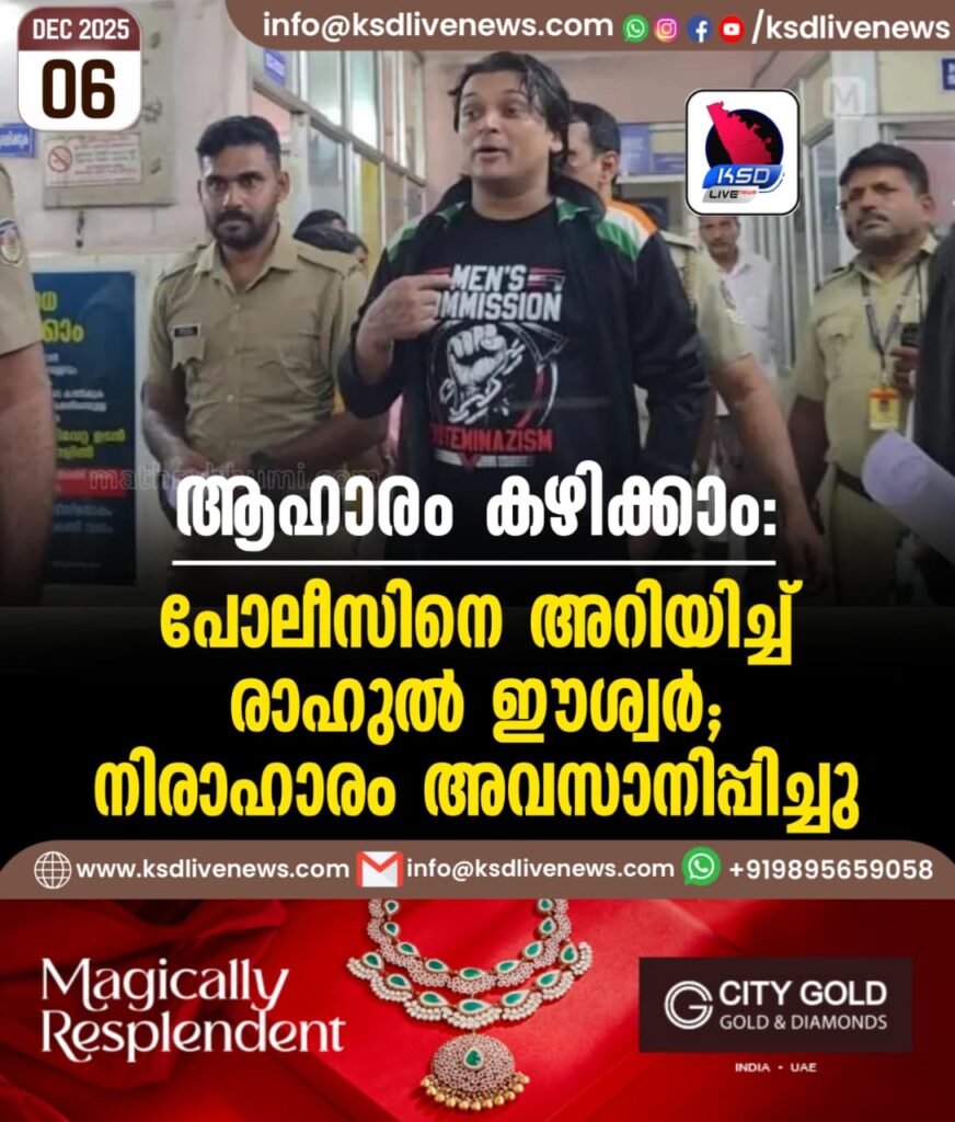 ആഹാരം കഴിക്കാം: പോലീസിനെ അറിയിച്ച് രാഹുല് ഈശ്വര്; നിരാഹാരം അവസാനിപ്പിച്ചു