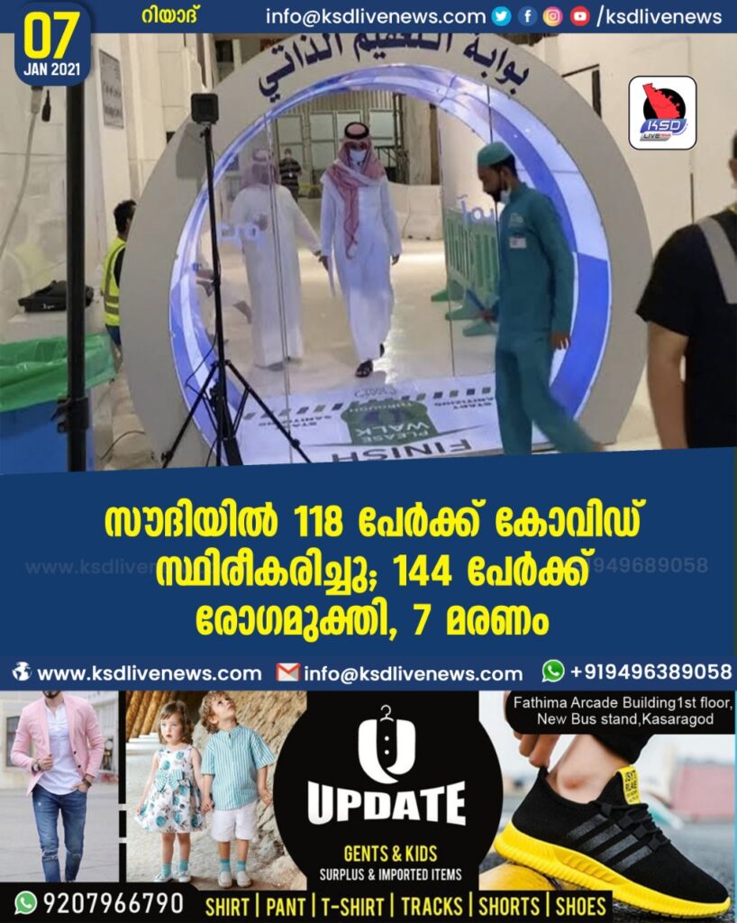 സൗദിയിൽ 118 പേർക്ക് കോവിഡ് സ്ഥിരീകരിച്ചു ; 7 മരണം ; 144 പേർക്ക് രോഗമുക്തി..