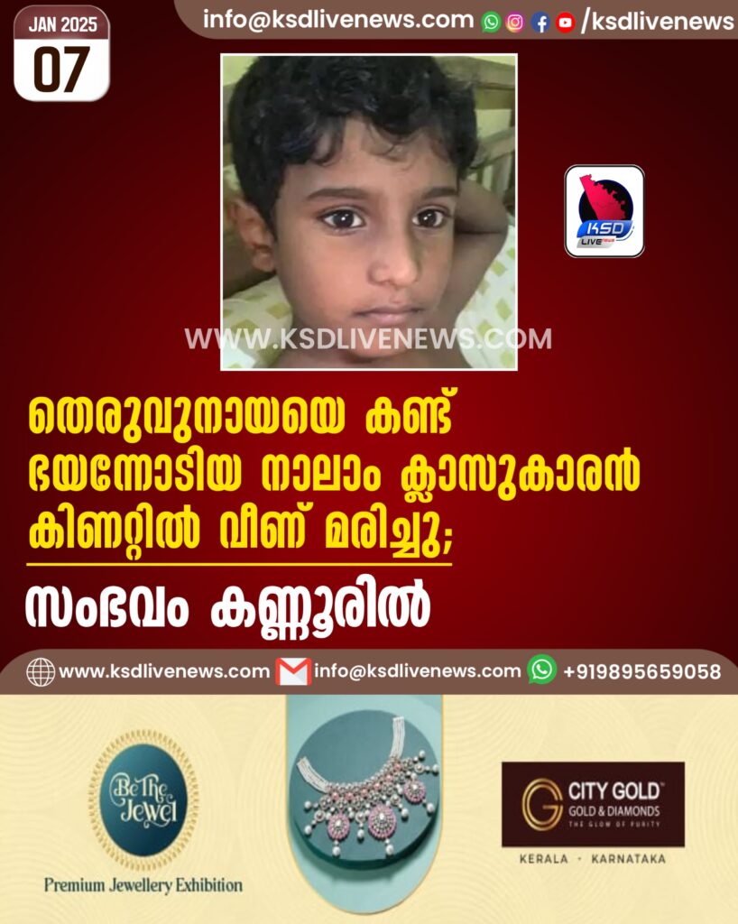 തെരുവുനായയെ കണ്ട് ഭയന്നോടിയ നാലാംക്ലാസുകാരന്‍ കിണറ്റില്‍വീണ് മരിച്ചു; സംഭവം കണ്ണൂരിൽ