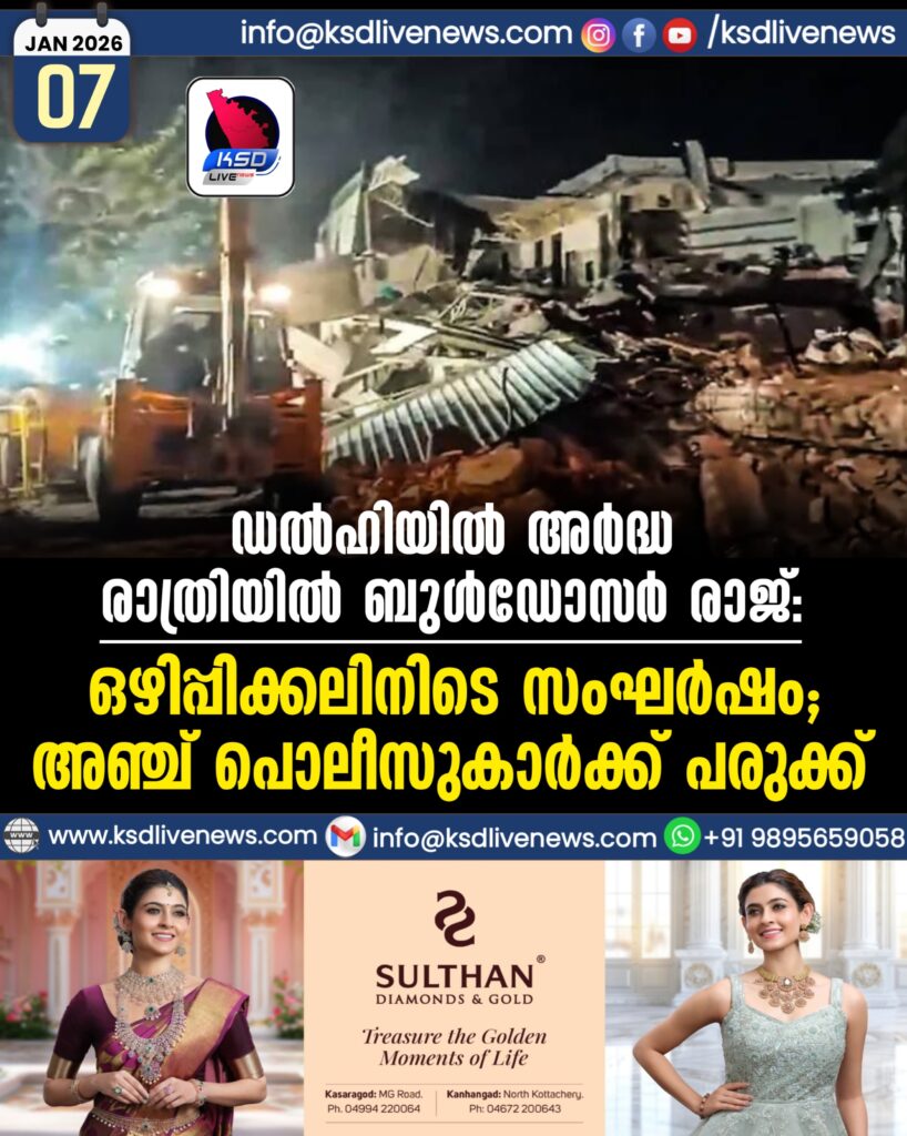 ഡൽഹിയിൽ അർദ്ധ രാത്രിയിൽ ബുൾഡോസർ രാജ്: ഒഴിപ്പിക്കലിനിടെ സംഘർഷം; അഞ്ച് പൊലീസുകാർക്ക് പരുക്ക്
