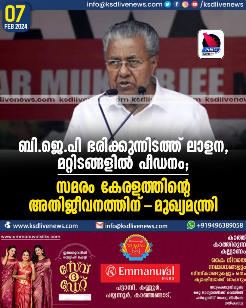 BJP ഭരിക്കുന്നിടത്ത് ലാളന, മറ്റിടങ്ങളിൽ പീഡനം; സമരം കേരളത്തിന്റെ അതിജീവനത്തിന്- മുഖ്യമന്ത്രി