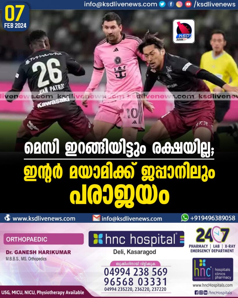 മെസി ഇറങ്ങിയിട്ടും രക്ഷയില്ല; ഇന്റർ മയാമിക്ക് ജപ്പാനിലും പരാജയം