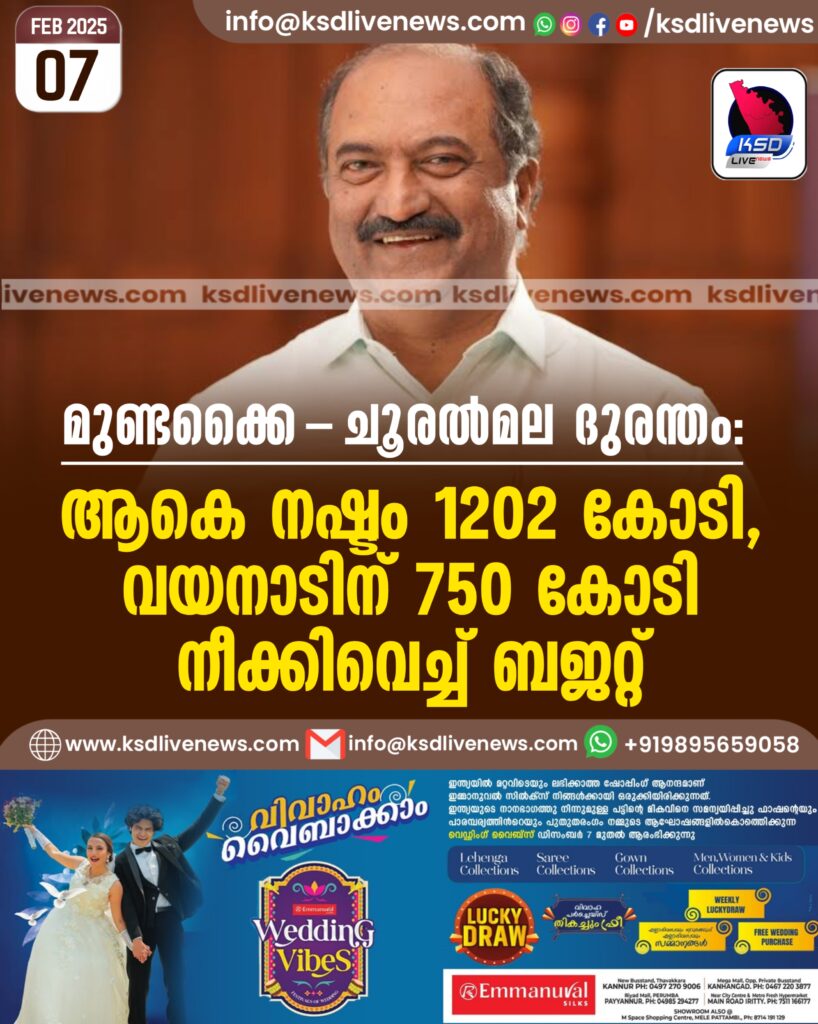 മുണ്ടക്കൈ-ചൂരൽമല ദുരന്തം: ആകെനഷ്ടം 1202 കോടി, വയനാടിന് 750 കോടി നീക്കിവെച്ച് ബജറ്റ്