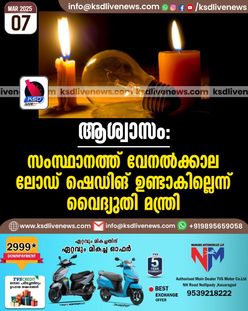 ആശ്വാസം; സംസ്ഥാനത്ത് വേനല്ക്കാല ലോഡ് ഷെഡിങ് ഉണ്ടാകില്ലെന്ന് വൈദ്യുതി മന്ത്രി