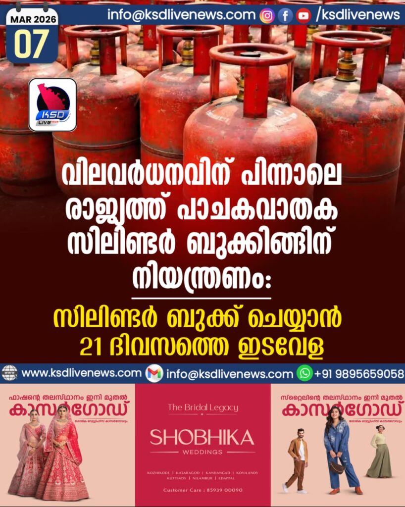 വിലവർധനവിന് പിന്നാലെ രാജ്യത്ത് പാചകവാതക സിലിണ്ടര്‍ ബുക്കിങ്ങിന് നിയന്ത്രണം: സിലിണ്ടര്‍ ബുക്ക് ചെയ്യാന്‍ 21 ദിവസത്തെ ഇടവേള