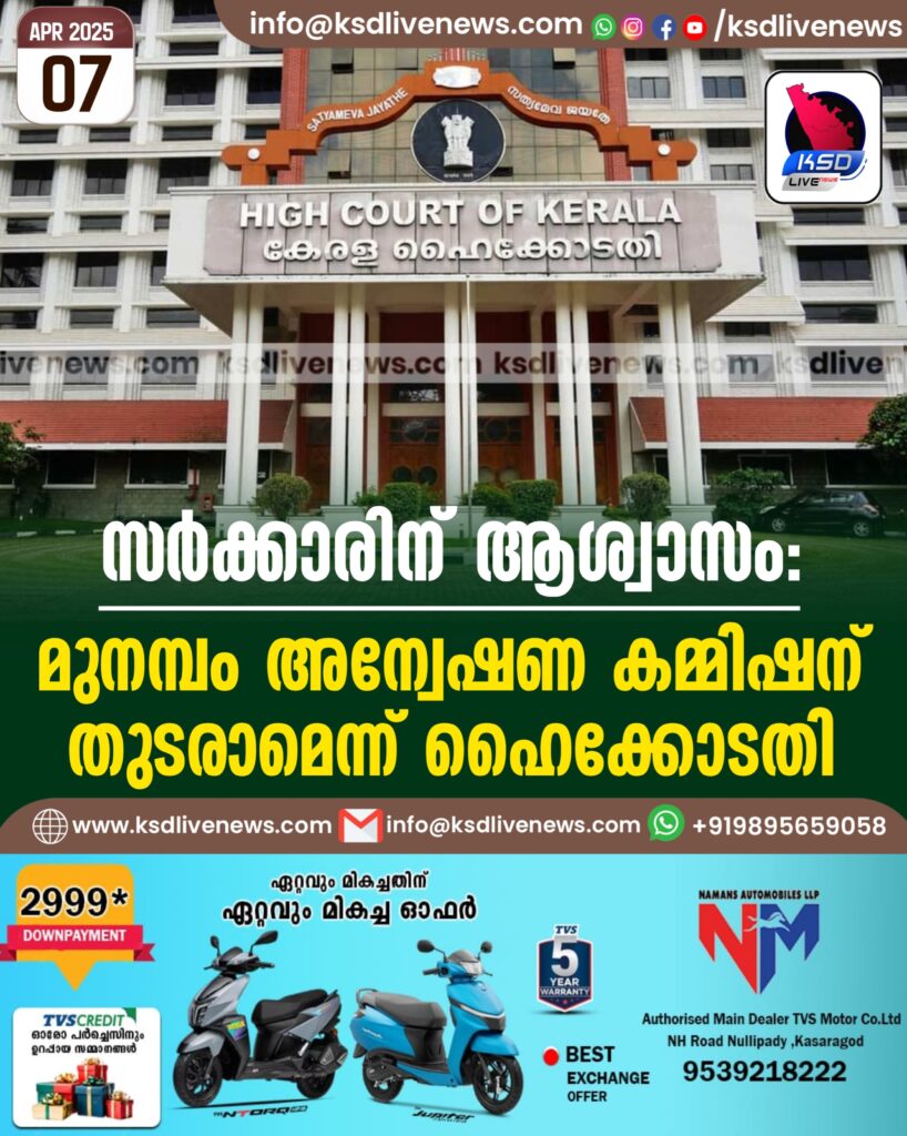 സർക്കാരിന് ആശ്വാസം: മുനമ്പം അന്വേഷണ കമ്മിഷന് തുടരാമെന്ന് ഹൈക്കോടതി