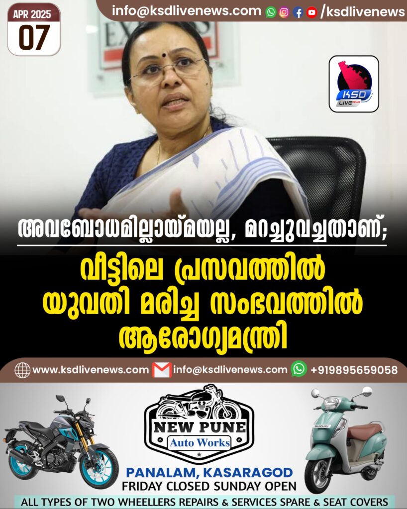 അവബോധമില്ലായ്മയല്ല, മറച്ചുവച്ചതാണ്; വീട്ടിലെ പ്രസവത്തില് യുവതി മരിച്ച സംഭവത്തില് ആരോഗ്യമന്ത്രി