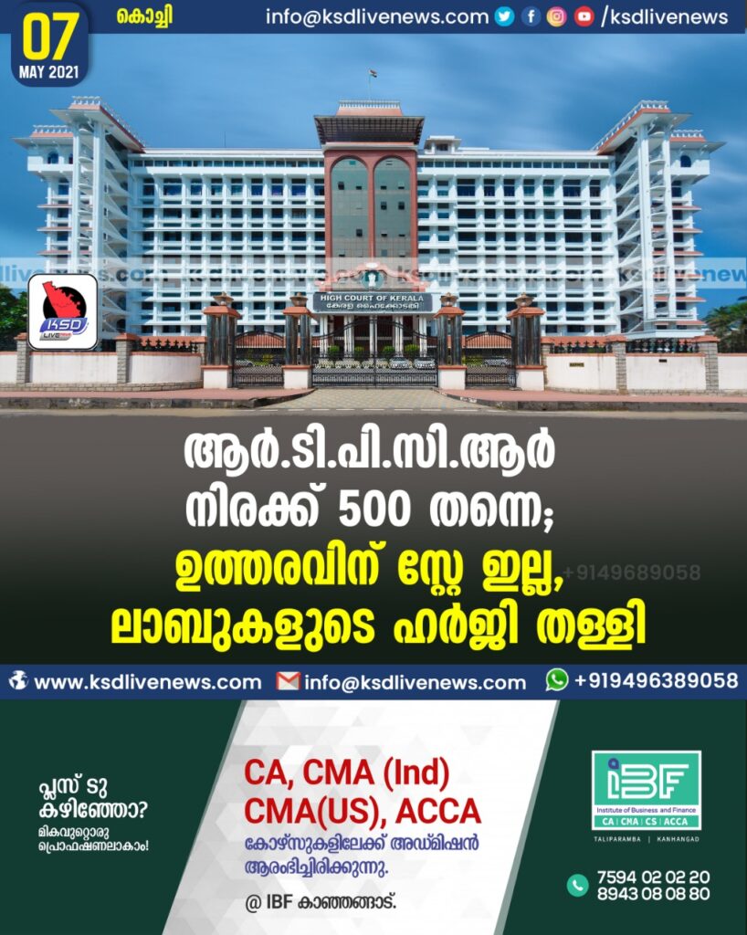 ,ആര്.ടി.പി.സി.ആര് നിരക്ക് 500 തന്നെ; ഉത്തരവിന് സ്റ്റേ ഇല്ല, ലാബുകളുടെ ഹര്ജി തള്ളി