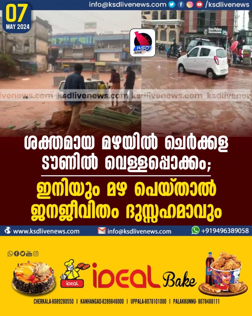 ശക്തമായ മഴയിൽ ചെര്ക്കള ടൗണില് വെള്ളപ്പൊക്കം; ഇനിയും മഴ പെയ്താൽ ജനജീവിതം ദുസ്സഹമാവും.