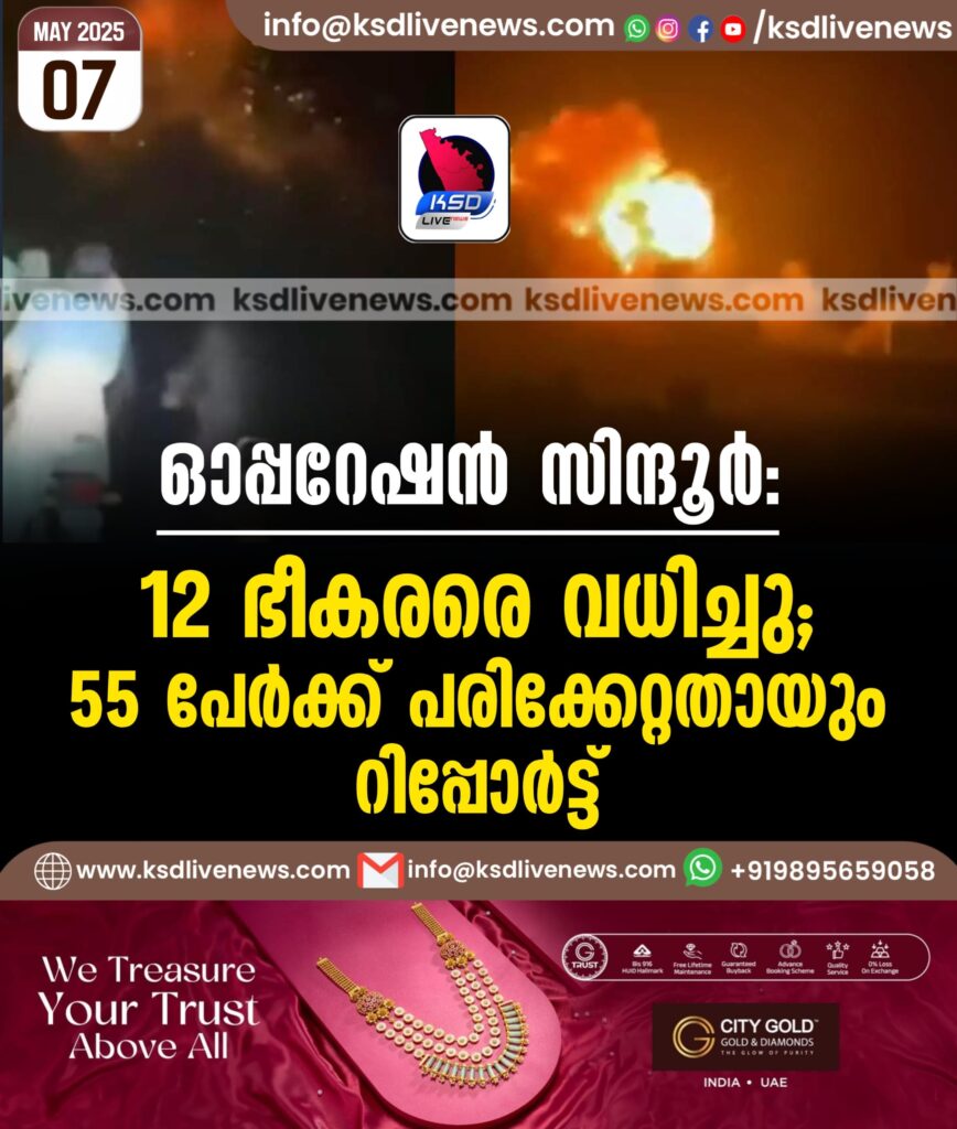 ഓപ്പറേഷൻ സിന്ദൂർ: 12 ഭീകരരെ വധിച്ചു; 55 പേർക്ക് പരിക്കേറ്റതായും റിപ്പോർട്ട്