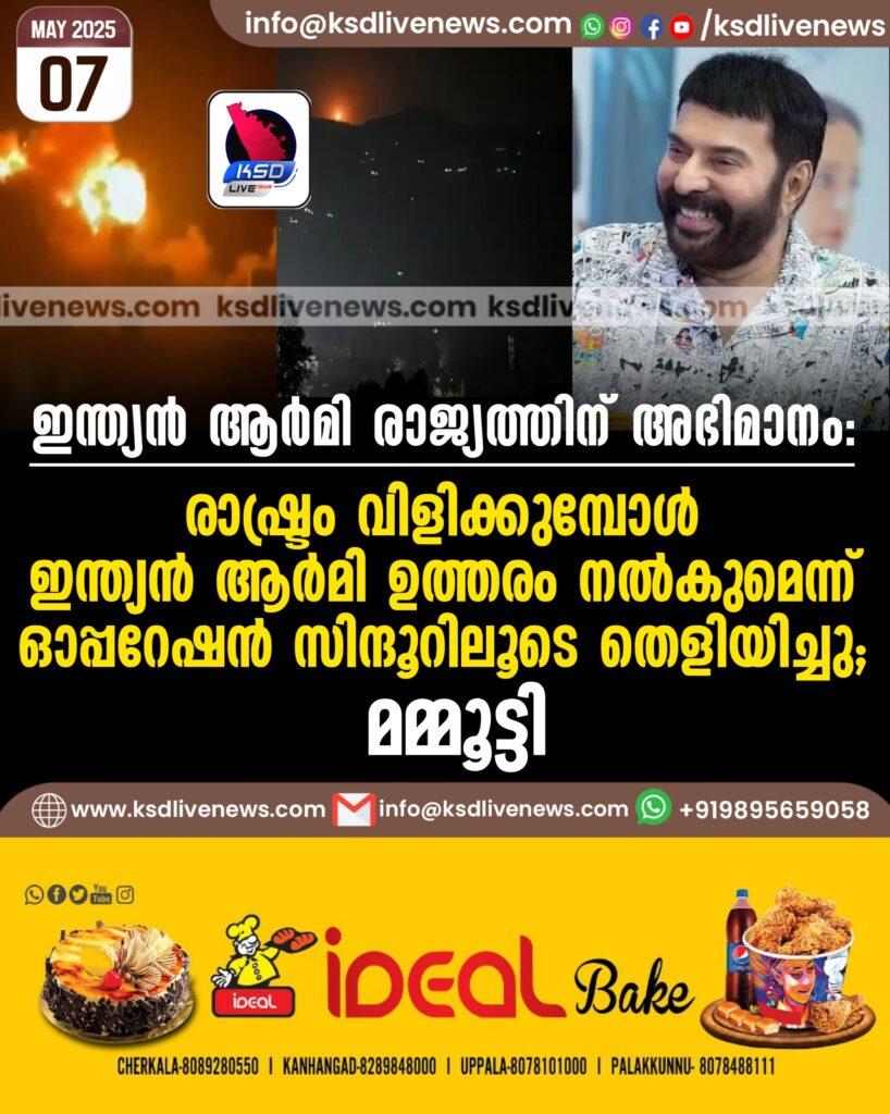 ഇന്ത്യൻ ആര്മി രാജ്യത്തിന് അഭിമാനം: രാഷ്ട്രം വിളിക്കുമ്പോള് ഇന്ത്യൻ ആര്മി ഉത്തരം നല്കുമെന്ന് ഓപ്പറേഷൻ സിന്ദൂറിലൂടെ തെളിയിച്ചു; മമ്മൂട്ടി