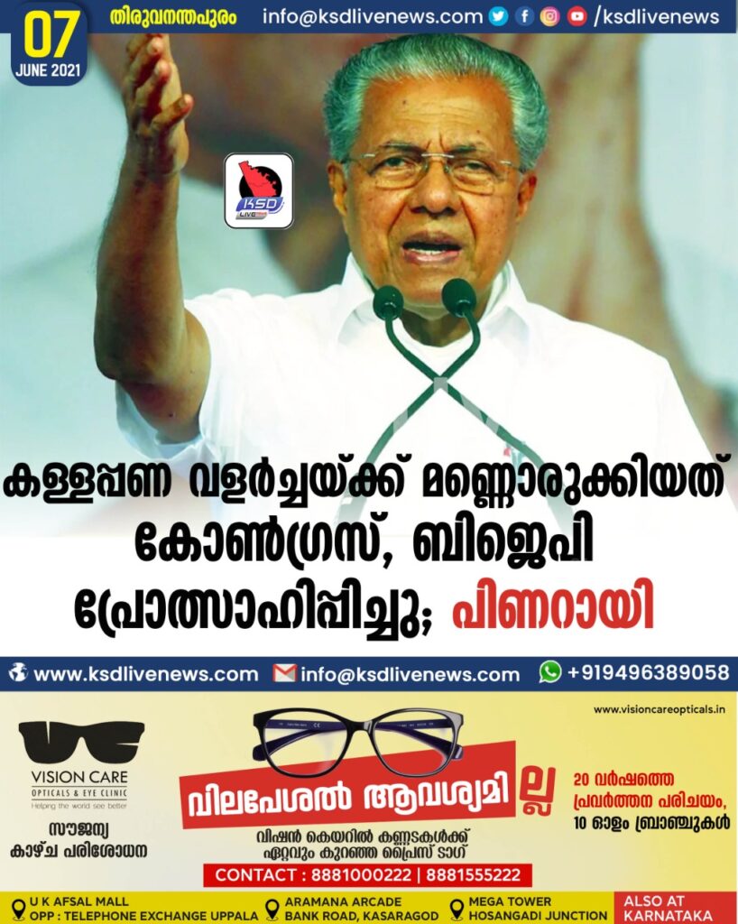 കള്ളപ്പണ വളര്ച്ചയ്ക്ക് മണ്ണൊരുക്കിയത് കോണ്ഗ്രസ്, ബിജെപി പ്രോത്സാഹിപ്പിച്ചു-പിണറായി