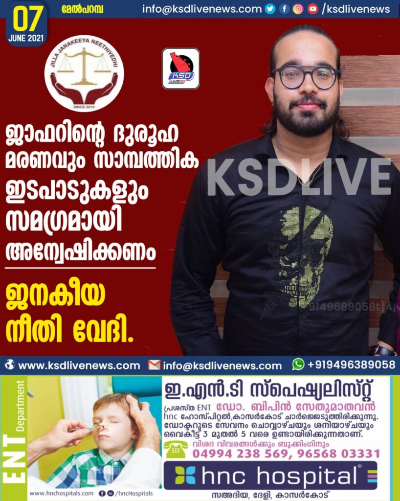 ജാഫറിന്റെ ദുരൂഹ മരണവും സാമ്പത്തിക ഇടപാടുകളും സമഗ്രമായി അന്വേഷിക്കണം.