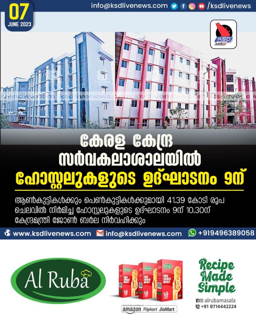കേരള കേന്ദ്ര സർവകലാശാലയിൽ ഹോസ്റ്റലുകളുടെ ഉദ്ഘാടനം 9ന്