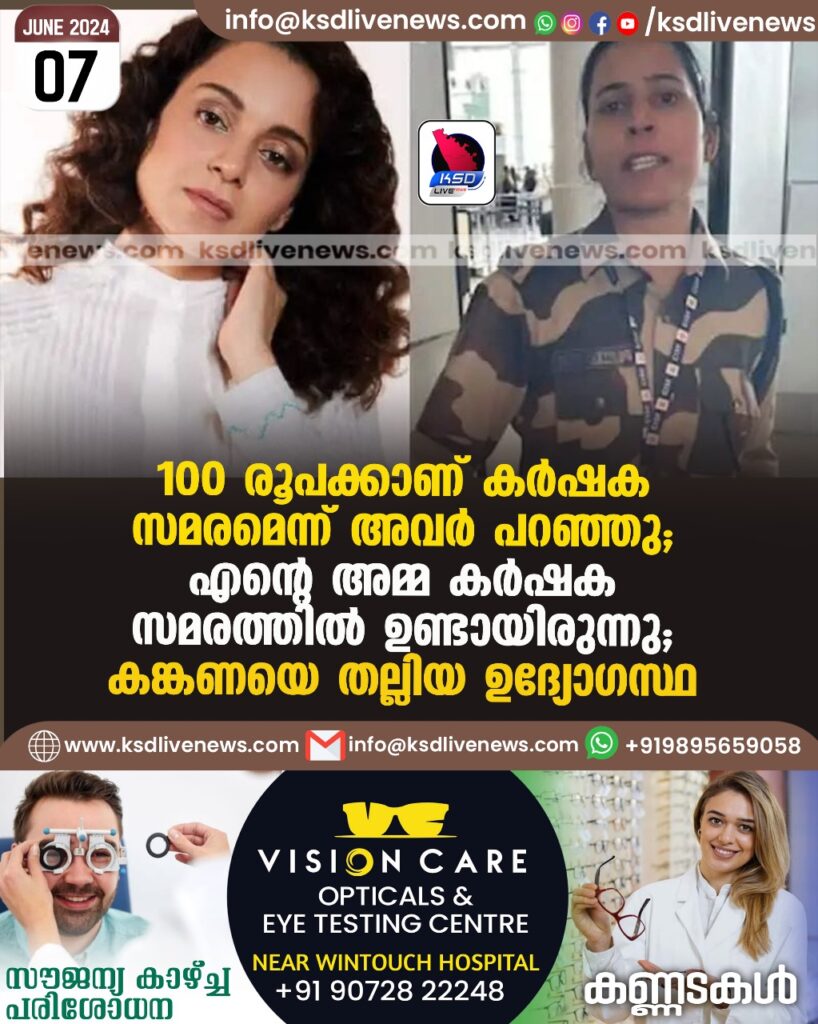 100 രൂപക്കാണ് കര്ഷക സമരമെന്ന് അവര് പറഞ്ഞു, എന്റെ അമ്മ കര്ഷക സമരത്തില് ഉണ്ടായിരുന്നു’; കങ്കണയെ തല്ലിയ ഉദ്യോഗസ്ഥ