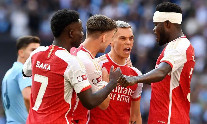 77ാം മിനിറ്റില്‍ കോള്‍ പാമറിലൂടെ ലീഡ് നേടിയ സിറ്റി കളി അവസാന മിനിറ്റുകളിലെത്തിയപ്പോള്‍ ജയം ഉറപ്പിച്ചതായിരുന്നു. എന്നാല്‍, ഫൈനല്‍ വിസിലിന് സെക്കൻഡുകള്‍ ശേഷിക്കെ ഇൻജുറി ടൈമിന്റെ പത്താം മിനിറ്റില്‍ ലിയാൻഡ്രോ ട്രൊസാര്‍ഡ് സന്ദര്‍ശകരുടെ രക്ഷക്കെത്തി. ഷൂട്ടൗട്ടില്‍ സിറ്റിയുടെ സൂപ്പര്‍ താരം കെവിൻ ഡിബ്രൂയിന്റെ ഷോട്ട് ബാറില്‍ തട്ടിത്തെറിച്ചപ്പോള്‍ റോഡ്രിയുടെ അടി ആഴ്സനല്‍ ഗോളി തടുത്തു.