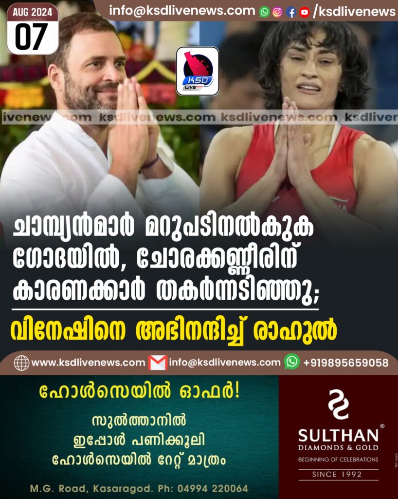 ചാമ്പ്യൻമാർ മറുപടിനൽകുക ഗോദയിൽ, ചോരക്കണ്ണീരിന് കാരണക്കാർ തകർന്നടിഞ്ഞു; വിനേഷിനെ അഭിനന്ദിച്ച് രാഹുൽ