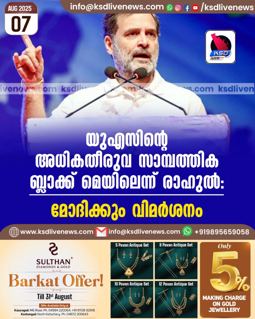 യുഎസിന്റെ അധികതീരുവ സാമ്പത്തിക ബ്ലാക്ക് മെയിലെന്ന് രാഹുൽ; മോദിക്കും വിമർശനം