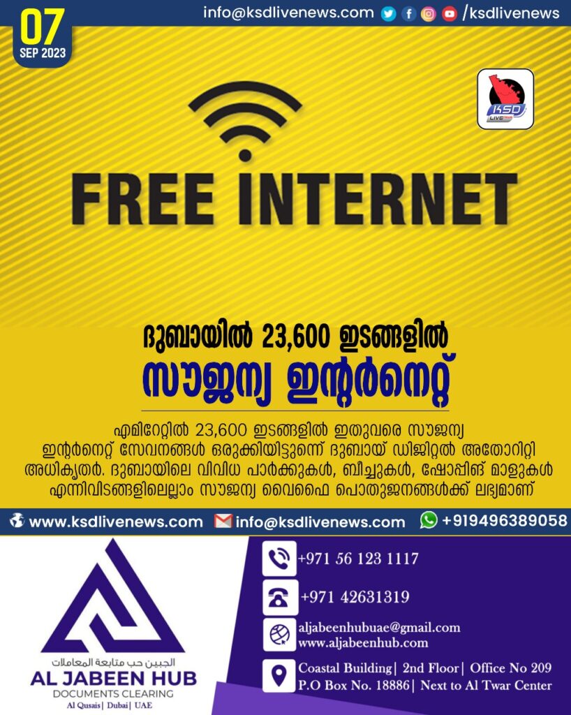 ദുബായിൽ 23,600 ഇടങ്ങളിൽ സൗജന്യ ഇന്റർനെറ്റ്