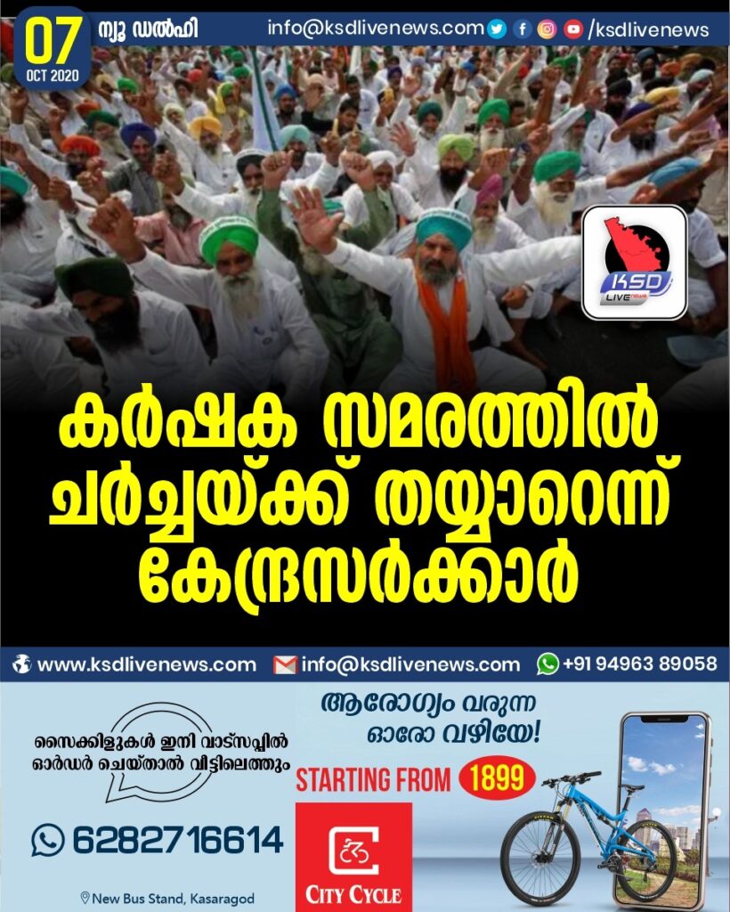കർഷക സമരത്തിൽ ചർച്ചയ്ക്ക് തയ്യാറെന്ന് കേന്ദ്രസർക്കാർ