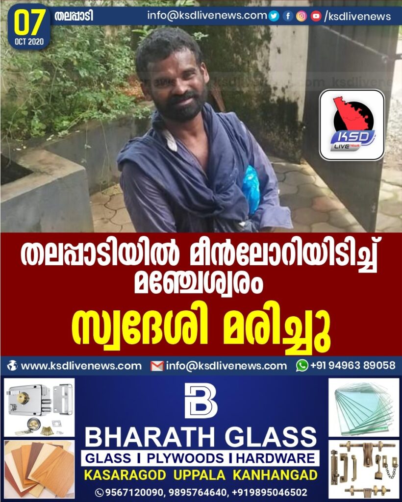 തലപ്പാടിയില് മീന്ലോറിയിടിച്ച് മഞ്ചേശ്വരം സ്വദേശി മരിച്ചു
