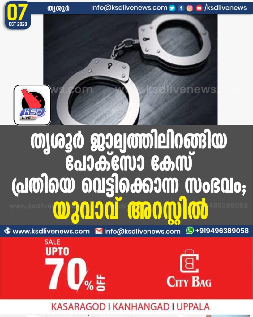 തൃശൂർ ജാമ്യത്തിലിറങ്ങിയ പോക്സോ കേസ് പ്രതിയെ വെട്ടിക്കൊന്ന സംഭവം ; യുവാവ് അറസ്റ്റിൽ