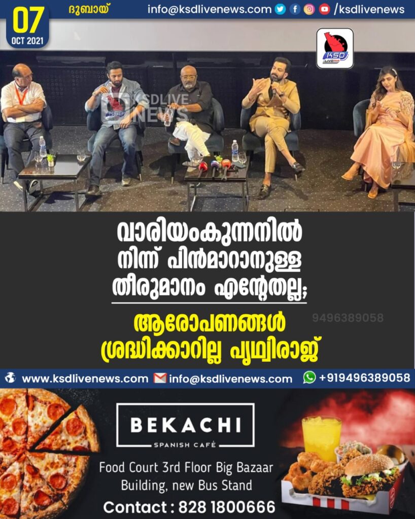വാരിയംകുന്നനില് നിന്ന് പിന്മാറാനുള്ള തീരുമാനം എന്റേതല്ല, ആരോപണങ്ങള് ശ്രദ്ധിക്കാറില്ല- പൃഥ്വിരാജ്