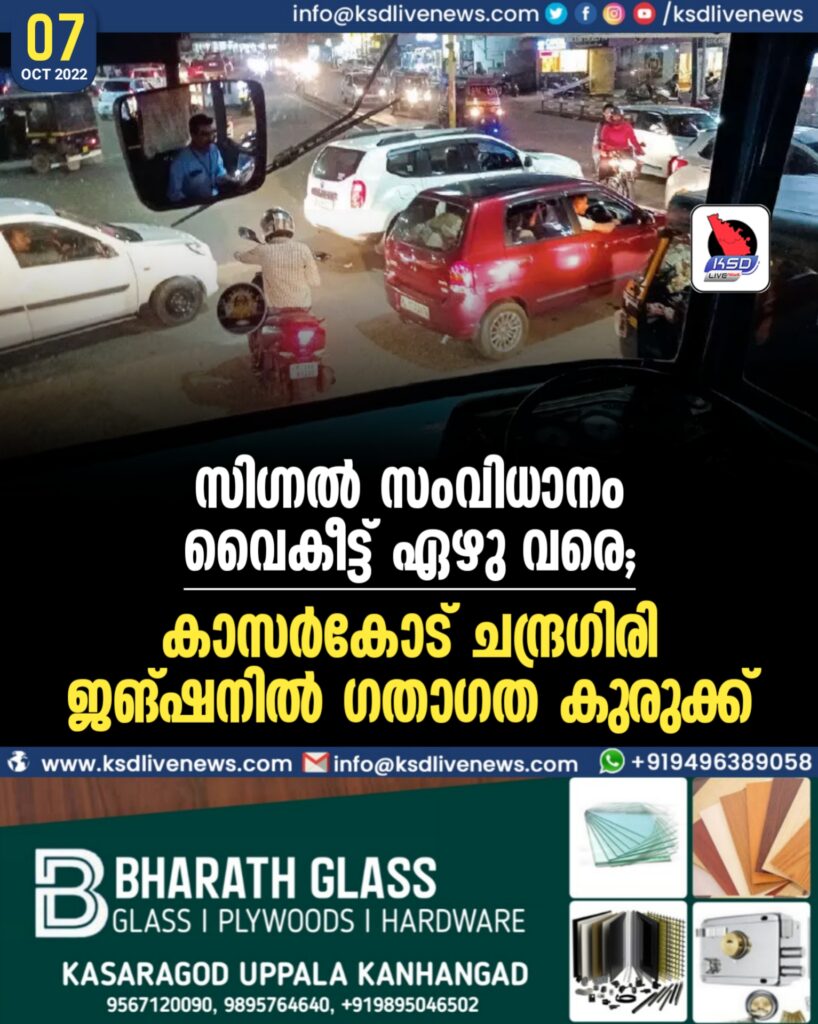 സിഗ്നൽ സംവിധാനം വൈകീട്ട് ഏഴുവരെ; കാസർകോട് ചന്ദ്രഗിരി ജങ്ഷനിൽ ഗതാഗത കുരുക്ക്