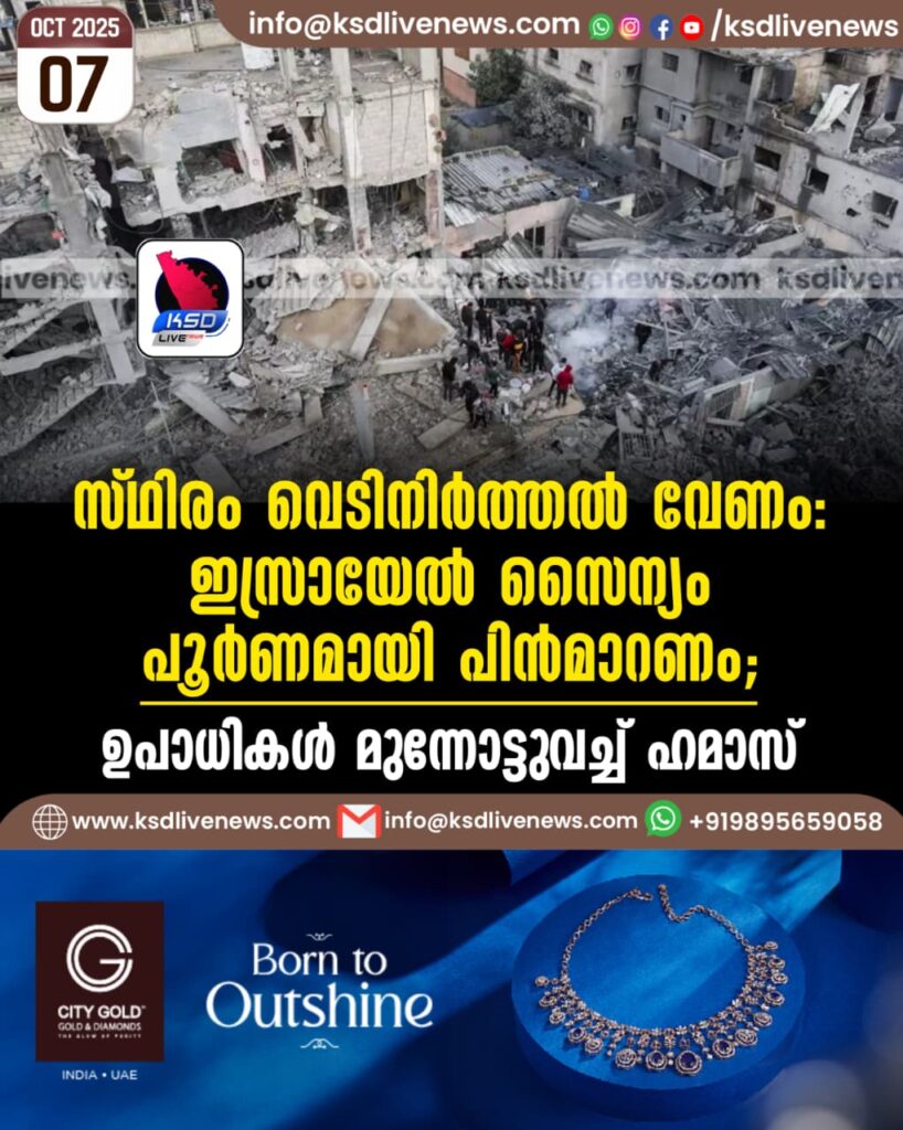 സ്ഥിരം വെടിനിർത്തൽ വേണം: ഇസ്രായേൽ സൈന്യം പൂർണമായി പിൻമാറണം; ഉപാധികൾ മുന്നോട്ടുവച്ച് ഹമാസ്