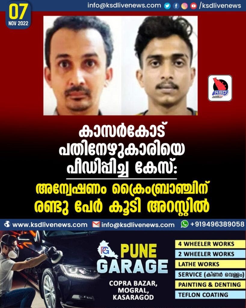 കാസർകോട് പതിനേഴുകാരിയെ പീഡിപ്പിച്ച കേസ്: അന്വേഷണം ക്രൈംബ്രാഞ്ചിന്, രണ്ടുപേര് കൂടി അറസ്റ്റില്