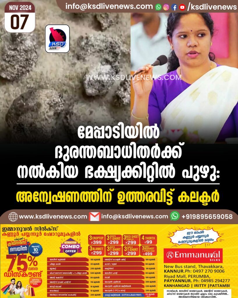 മേപ്പാടിയിൽ ദുരന്തബാധിതർക്ക് നൽകിയ ഭക്ഷ്യക്കിറ്റിൽ പുഴു: അന്വേഷണത്തിന് ഉത്തരവിട്ട് കലക്ടർ