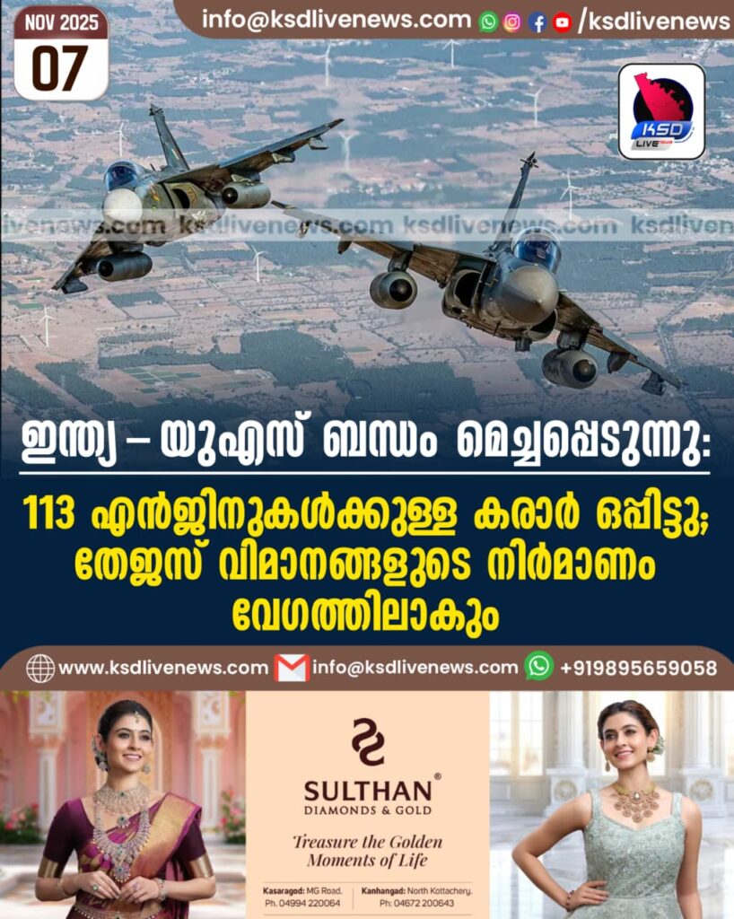 ഇന്ത്യ-യുഎസ് ബന്ധം മെച്ചപ്പെടുന്നു: 113 എന്ജിനുകള്ക്കുള്ള കരാര് ഒപ്പിട്ടു; തേജസ് വിമാനങ്ങളുടെ നിര്മാണം വേഗത്തിലാകും