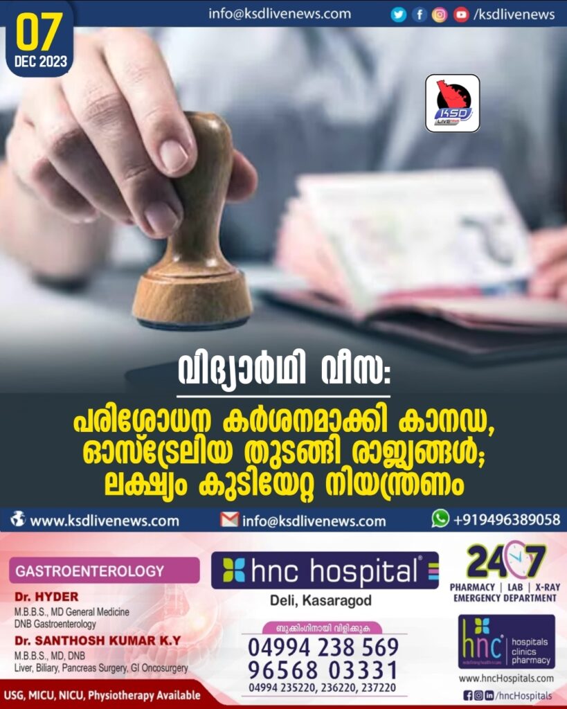 വിദ്യാർഥി വീസ: പരിശോധന കർശനമാക്കി കാനഡ, ഓസ്ട്രേലിയ തുടങ്ങി രാജ്യങ്ങൾ; ലക്ഷ്യം കുടിയേറ്റ നിയന്ത്രണം
