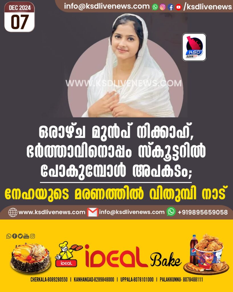 ഒരാഴ്ച മുൻപ് നിക്കാഹ്, ഭർത്താവിനൊപ്പം സ്കൂട്ടറിൽ പോകുമ്പോൾ അപകടം; നേഹയുടെ മരണത്തിൽ വിതുമ്പി നാട്
