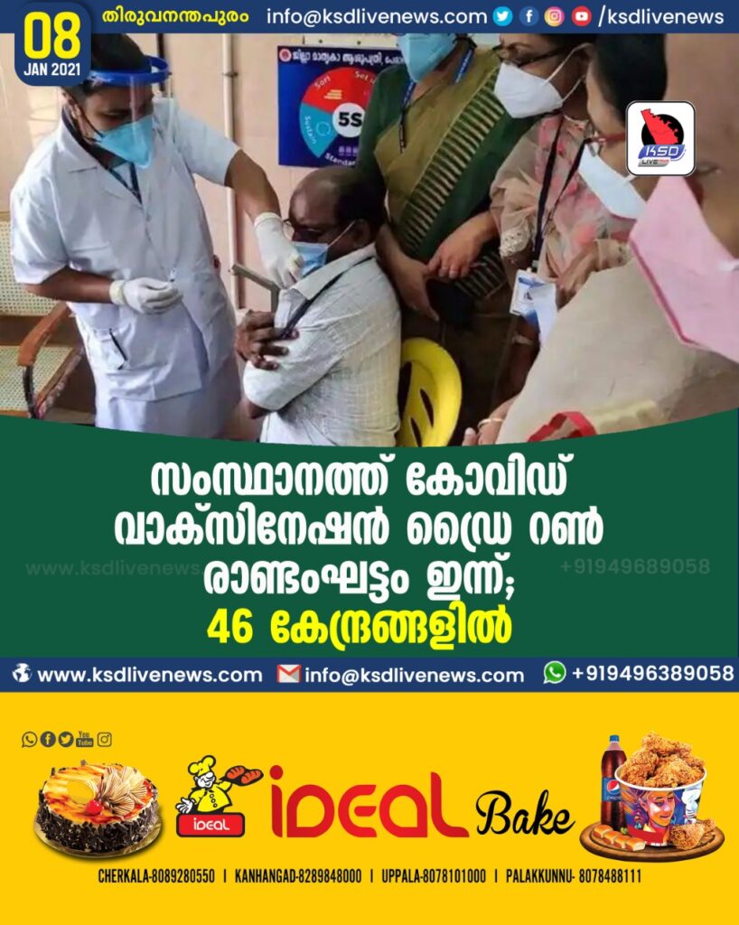 സംസ്ഥാനത്ത് കോവിഡ് വാക്സിനേഷൻ ഡ്രൈ റൺ രണ്ടാംഘട്ടം ഇന്ന് ; 46 കേന്ദ്രങ്ങളിൽ