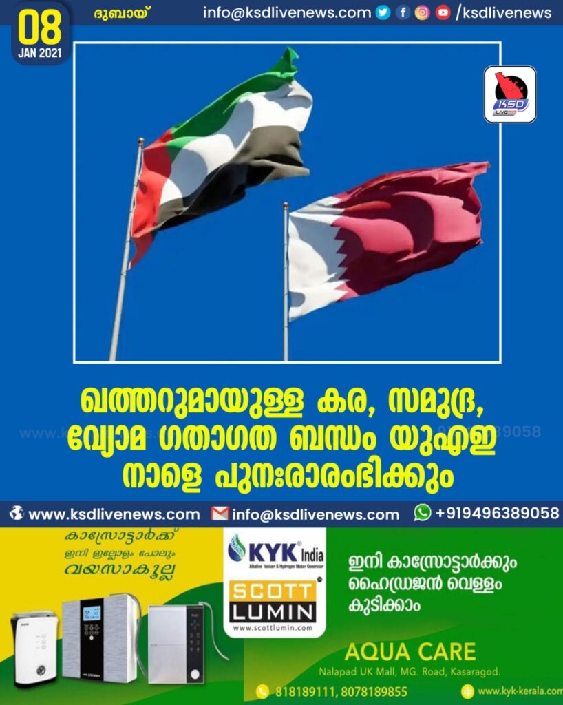 ഖത്തറുമായുള്ള കര , സമുദ്ര , വ്യോമ ഗതാഗത ബന്ധം യുഎഇ നാളെ പുനഃരാരംഭിക്കും