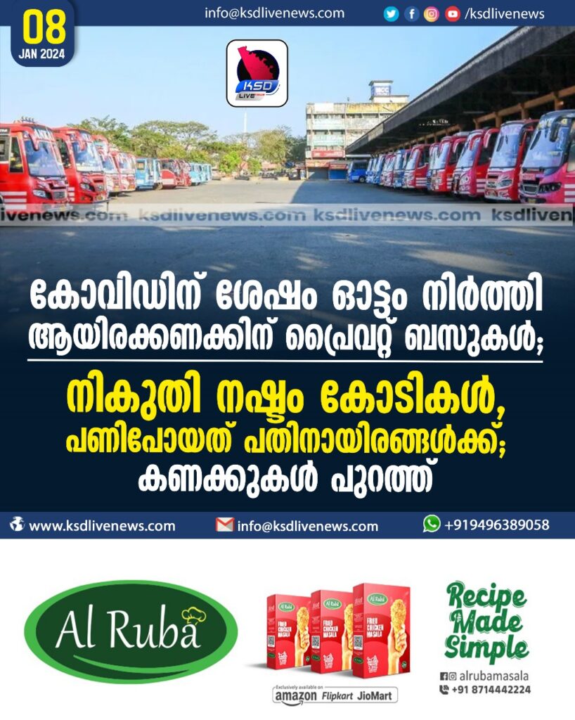കോവിഡിന് ശേഷം ഓട്ടം നിര്ത്തി ആയിരക്കണക്കിന് പ്രൈവറ്റ് ബസുകള്; നികുതി നഷ്ടം കോടികള്, പണിപോയത് പതിനായിരങ്ങള്ക്ക്; കണക്കുകൾ പുറത്ത്