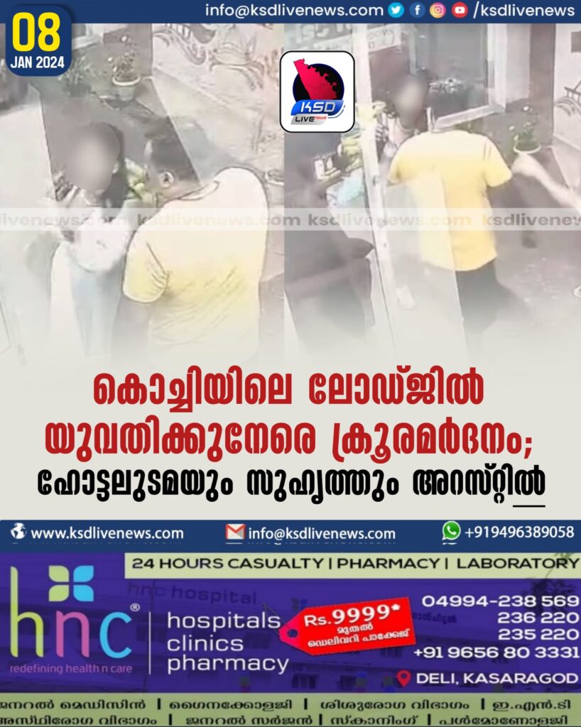 കൊച്ചിയിലെ ലോഡ്ജിൽ യുവതിക്കുനേരെ ക്രൂരമർദനം; ഹോട്ടലുടമയും സുഹൃത്തും അറസ്റ്റിൽ