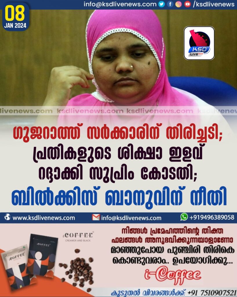 ഗുജറാത്ത് സർക്കാരിന് തിരിച്ചടി; പ്രതികളുടെ ശിക്ഷാ ഇളവ് റദ്ദാക്കി സുപ്രിം കോടതി; ബിൽക്കിസ് ബാനുവിന് നീതി