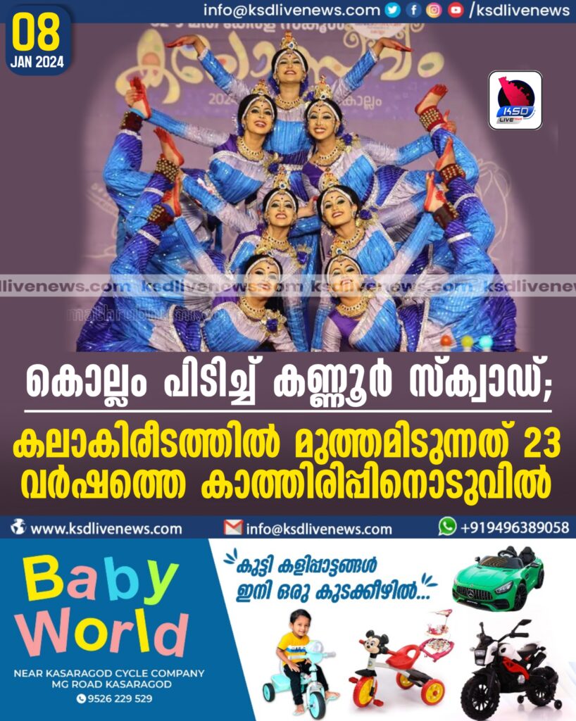 കൊല്ലം പിടിച്ച് കണ്ണൂര് സ്ക്വാഡ്;കലാകിരീടത്തില് മുത്തമിടുന്നത് 23 വര്ഷത്തെ കാത്തിരിപ്പിനൊടുവില്