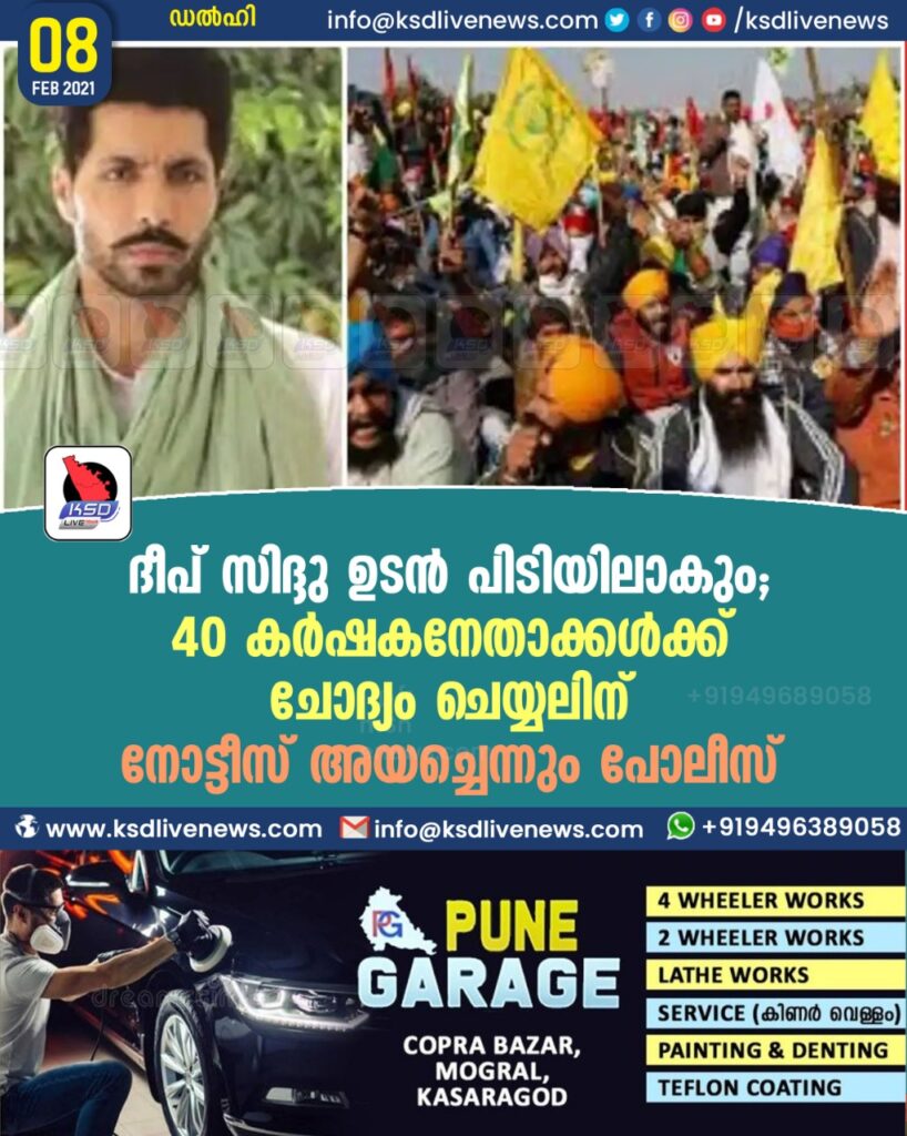 ദീപ് സിദ്ദു ഉടൻ പിടിയിലാകും ; 40 കർഷകനേതാക്കൾക്ക് ചോദ്യം ചെയ്യലിന് നോട്ടീസ് അയച്ചെന്നും പോലീസ്