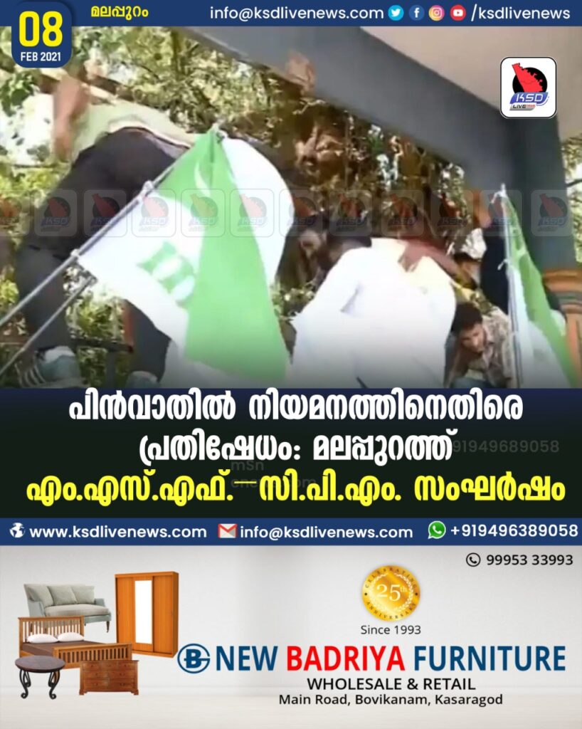 പിന്വാതില് നിയമനത്തിനെതിരെ പ്രതിഷേധം: മലപ്പുറത്ത് എം.എസ്.എഫ്.-സി.പി.എം. സംഘര്ഷം