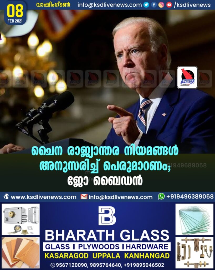 ചൈന രാജ്യാന്തര നിയമങ്ങൾ അനുസരിച്ച് പെരുമാറണം ; ജോ ബൈഡൻ