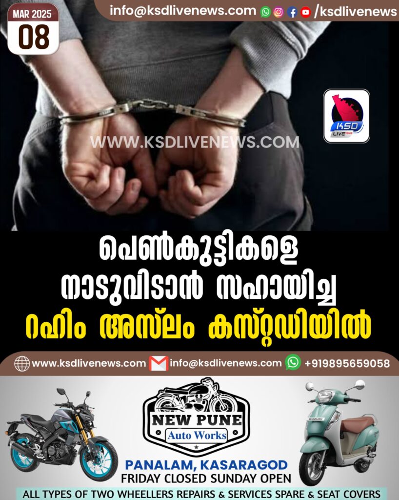 പെൺകുട്ടികളെ നാടുവിടാൻ സഹായിച്ച റഹിം അസ്ലം കസ്റ്റഡിയിൽ; വിദ്യാർഥികളെ ഇന്ന് നാട്ടിലെത്തിക്കും