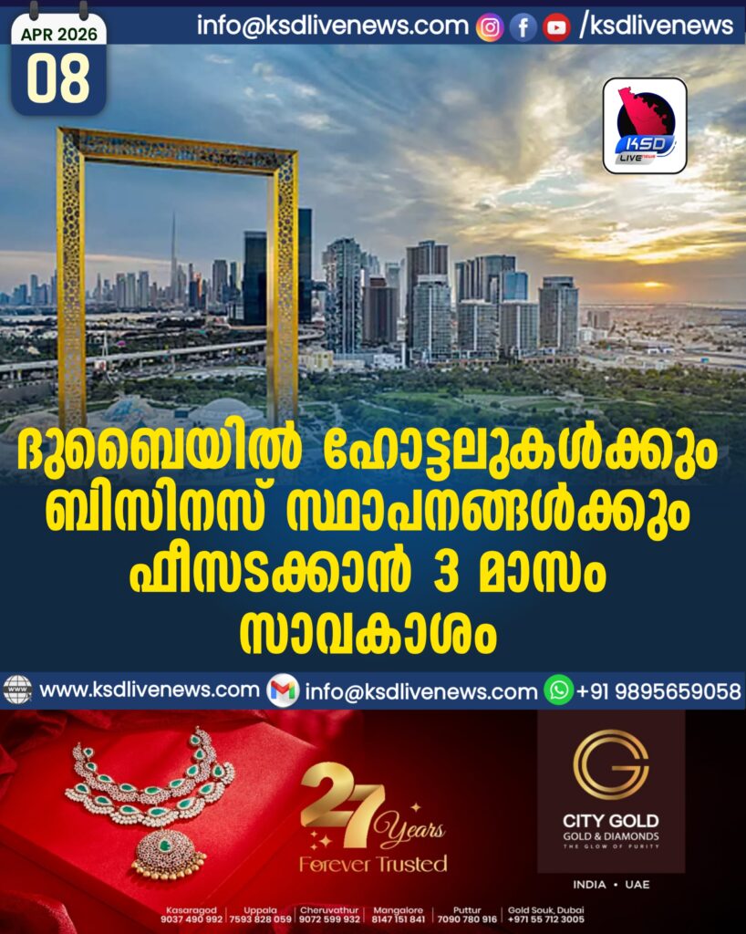 ദുബൈയിൽ ഹോട്ടലുകൾക്കും ബിസിനസ് സ്ഥാപനങ്ങൾക്കും ഫീസടക്കാൻ 3 മാസം സാവകാശം