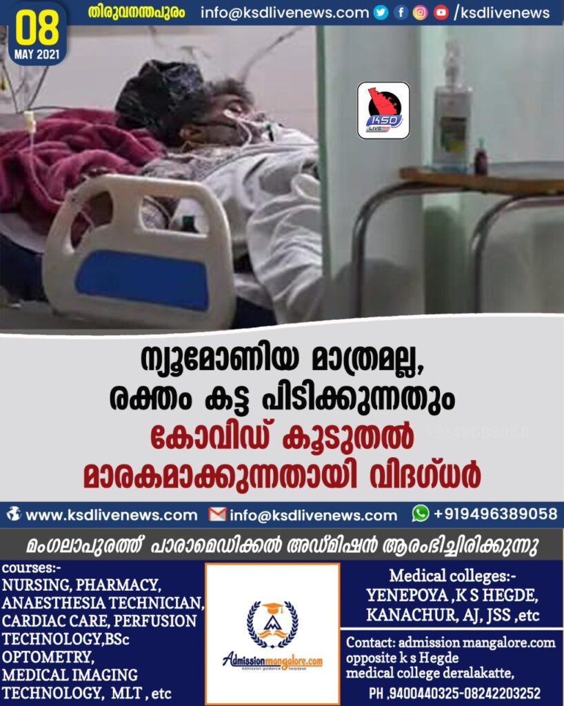 ന്യൂമോണിയ മാത്രമല്ല രക്തം കട്ടപിടിക്കുന്നതും കോവിഡ് കൂടുതല് മാരകമാക്കുന്നതായി വിദഗ്ധര്