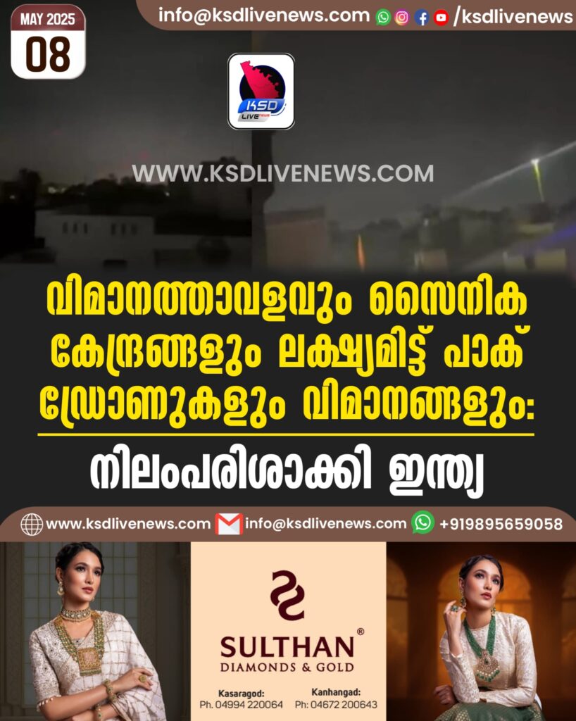 വിമാനത്താവളവും സൈനിക കേന്ദ്രങ്ങളും ലക്ഷ്യമിട്ട് പാക് ഡ്രോണുകളും വിമാനങ്ങളും; നിലംപരിശാക്കി ഇന്ത്യ