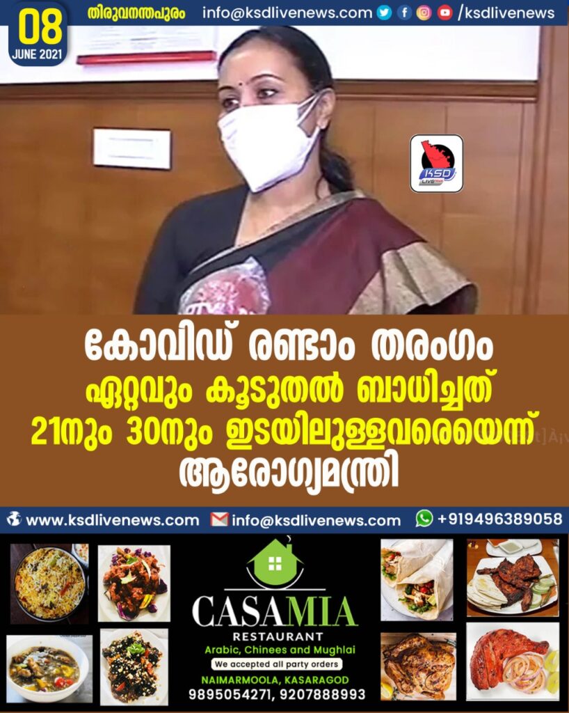 കോവിഡ് രണ്ടാം തരംഗം ഏറ്റവുംകൂടുതല് ബാധിച്ചത് 21നും 30നും ഇടയിലുള്ളവരെയെന്ന് ആരോഗ്യമന്ത്രി