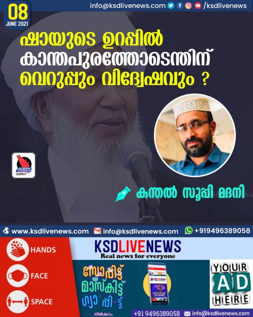 ഷായുടെ ഉറപ്പിൽ കാന്തപുരത്തോടെന്തിന് ? വെറുപ്പും വിദ്വേഷവും ; കന്തൽ സൂപ്പി മദനി, കുമ്പള
