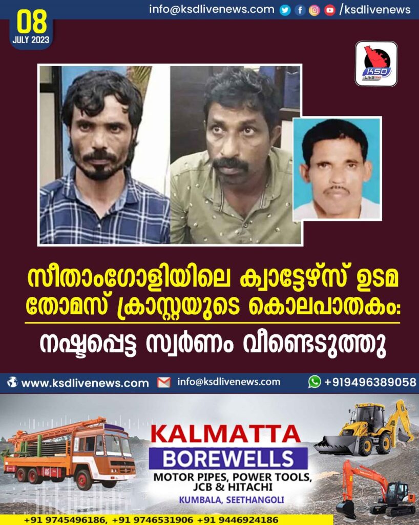 സീതാംഗോളിയിലെ ക്വാട്ടേഴ്സ് ഉടമ തോമസ് ക്രാസ്റ്റയുടെ കൊലപാതകം: നഷ്ടപ്പെട്ട സ്വർണം വീണ്ടെടു